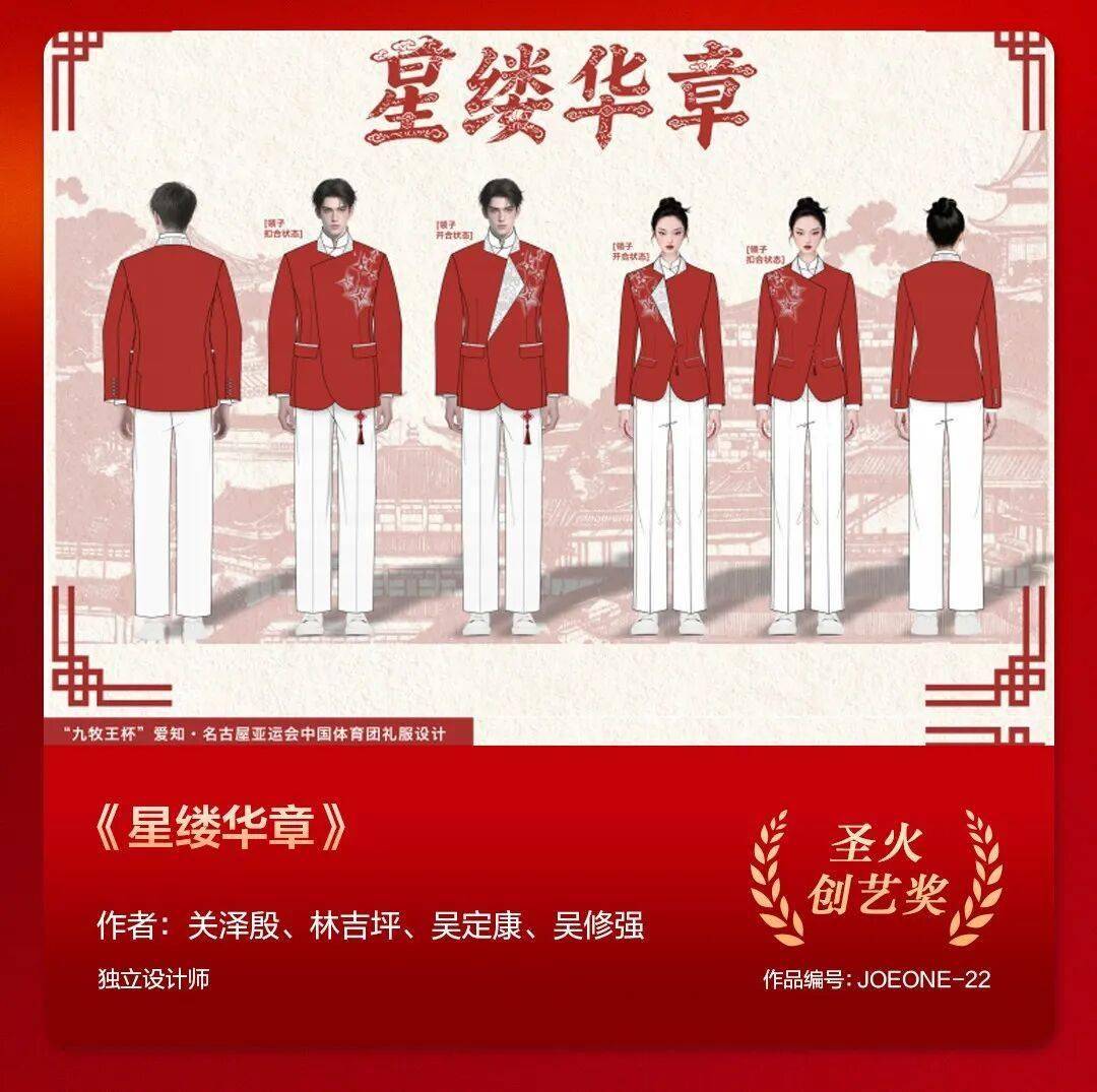 由中国奥委会市场开发部与九牧王股份有限公司联合主办,中国服装协会&中国服装设计师协会提供支持的“九牧王杯”爱知·名古屋亚运会中国体育代表团礼服设计大赛,自启动以来得到了全球服装设计从业者及爱好者的积极响应与热情参与。大赛以“星耀”为主题,旨在为2026年爱知·名古屋亚运会中国体育代表团打造兼具文化内涵与时尚活力的入场礼仪服装备,展现中国体育精神与文化自信。