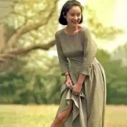 对裙子的驾驭,林青霞也是得心应手,白T+条纹半裙,搭配起来,很有一番女人味。随意披洒的头发,魅力尽显。